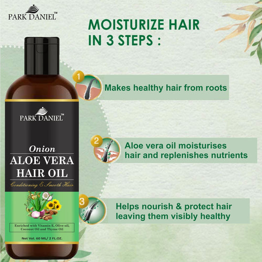 Park Daniel Premium Onion Aloe Vera Hair Oil Enriched With Vitamin E-For Conditioning and Smooth Hair Combo Pack 3 Bottle of 60 ml(180 ml)